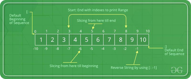 array('i', [2, 3, 5])Trong mảng Python, có nhiều cách để in toàn bộ mảng với tất cả các phần tử, nhưng để in một phạm vi phần tử cụ thể từ mảng, chúng ta sử dụng phép toán Slice .