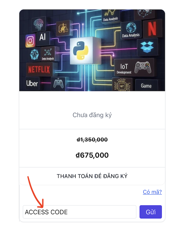 2. Mã truy cập (access code) được sử dụng để cho phép truy cập trực tiếp vào từng khóa học, miễn phí 100%.